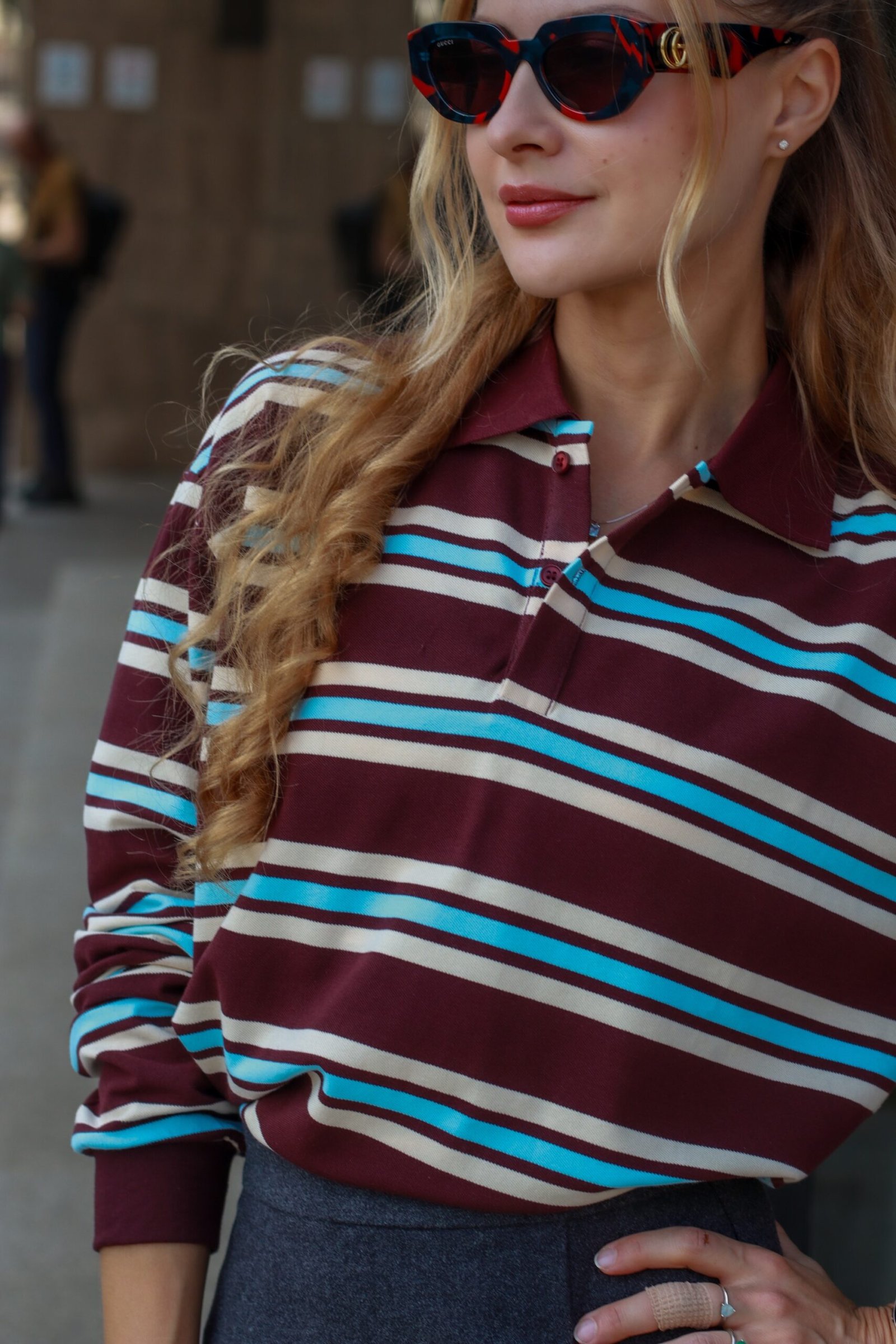 Palaidinė turi klasikinį polo stiliaus kaklą su sagutėmis, ilgomis rankovėmis ir laisvesnį siluetą – todėl lengvai derės tiek su sijonu, tiek su džinsais ar šortais. Tai puikus pasirinkimas rudeniui, kai norisi patogumo ir stiliaus viename.