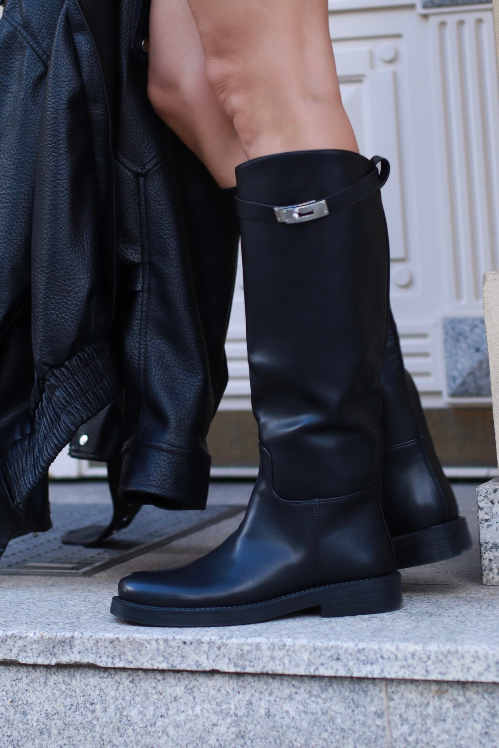 Klasikinio dizaino juodi auliniai batai – nepakeičiama avalynė rudens–žiemos sezonui. Pagaminti iš aukštos kokybės eko odos, jie yra stilingi, patvarūs ir draugiškesni aplinkai. Minimalistinis siluetas papildytas subtilia dekoratyvine sagtimi su metalo detalėmis, suteikiančia elegancijos ir išskirtinumo.