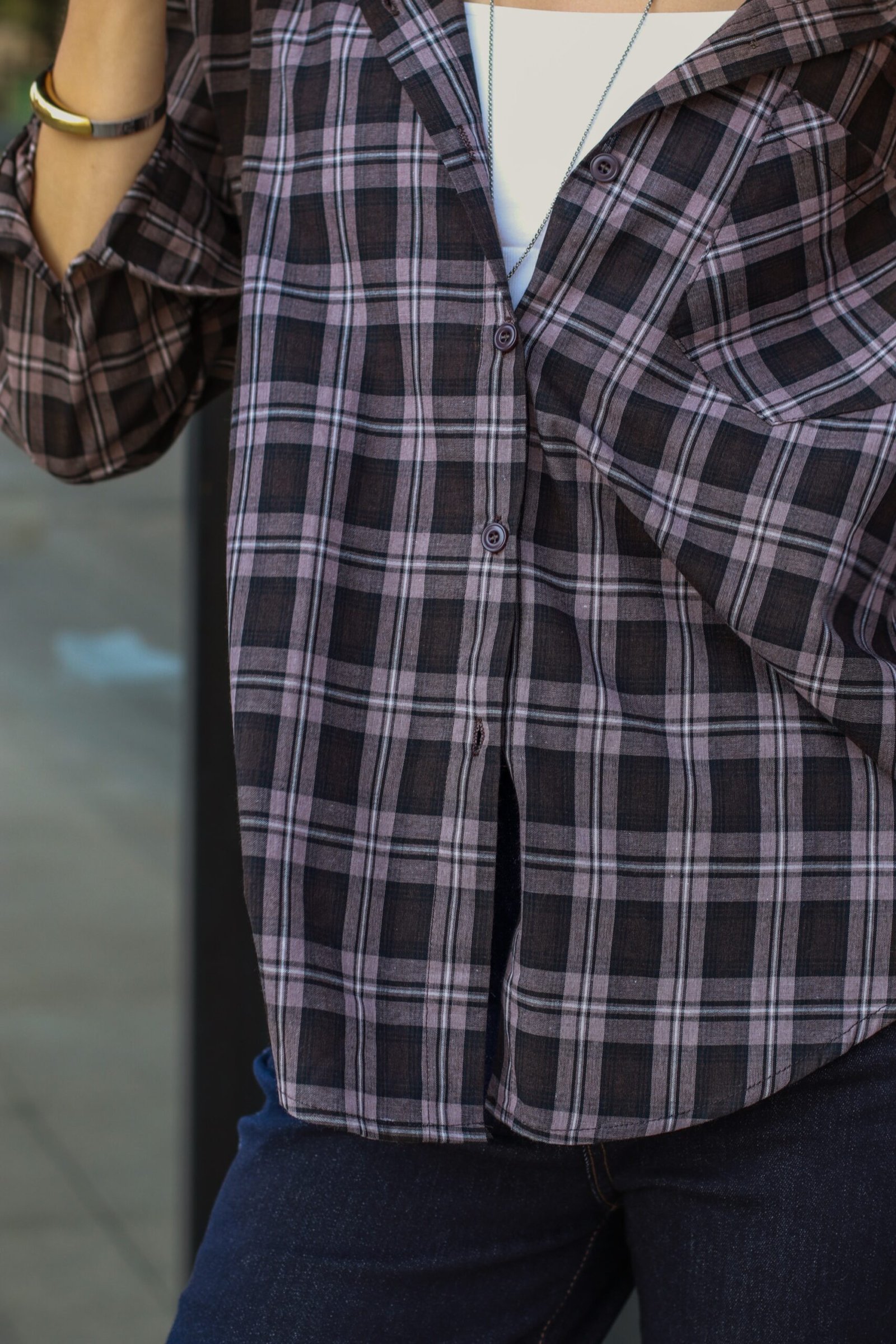 Šie oversized stiliaus languoti marškiniai – tai universalus drabužis, tinkantis tiek kasdienai, tiek sluoksniavimui vėsesniais vakarais. Juoda ir duski rožinė spalvų derinys suteikia subtilaus moteriškumo, išlaikant klasikinį languoto audinio charakterį.