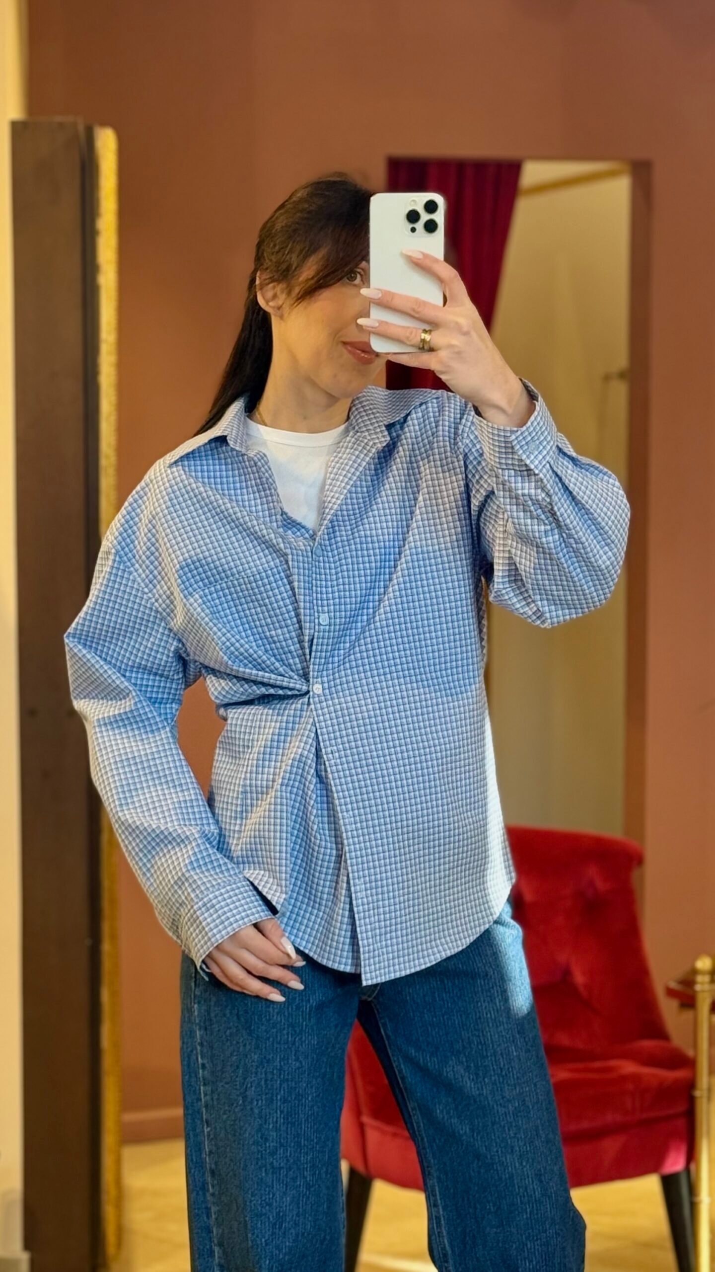 Stilingi mėlynai balti languoti marškiniai su išskirtiniu įliemenavimu sagutėmis – subtili detalė, kuri suteikia formą, išryškina liemenį ir paverčia klasikinį modelį kur kas įdomesniu. Laisvesnis siluetas, minkštas krintantis audinys ir patogus kirpimas leidžia jaustis komfortiškai visą dieną – nuo biuro iki savaitgalio pasivaikščiojimų.