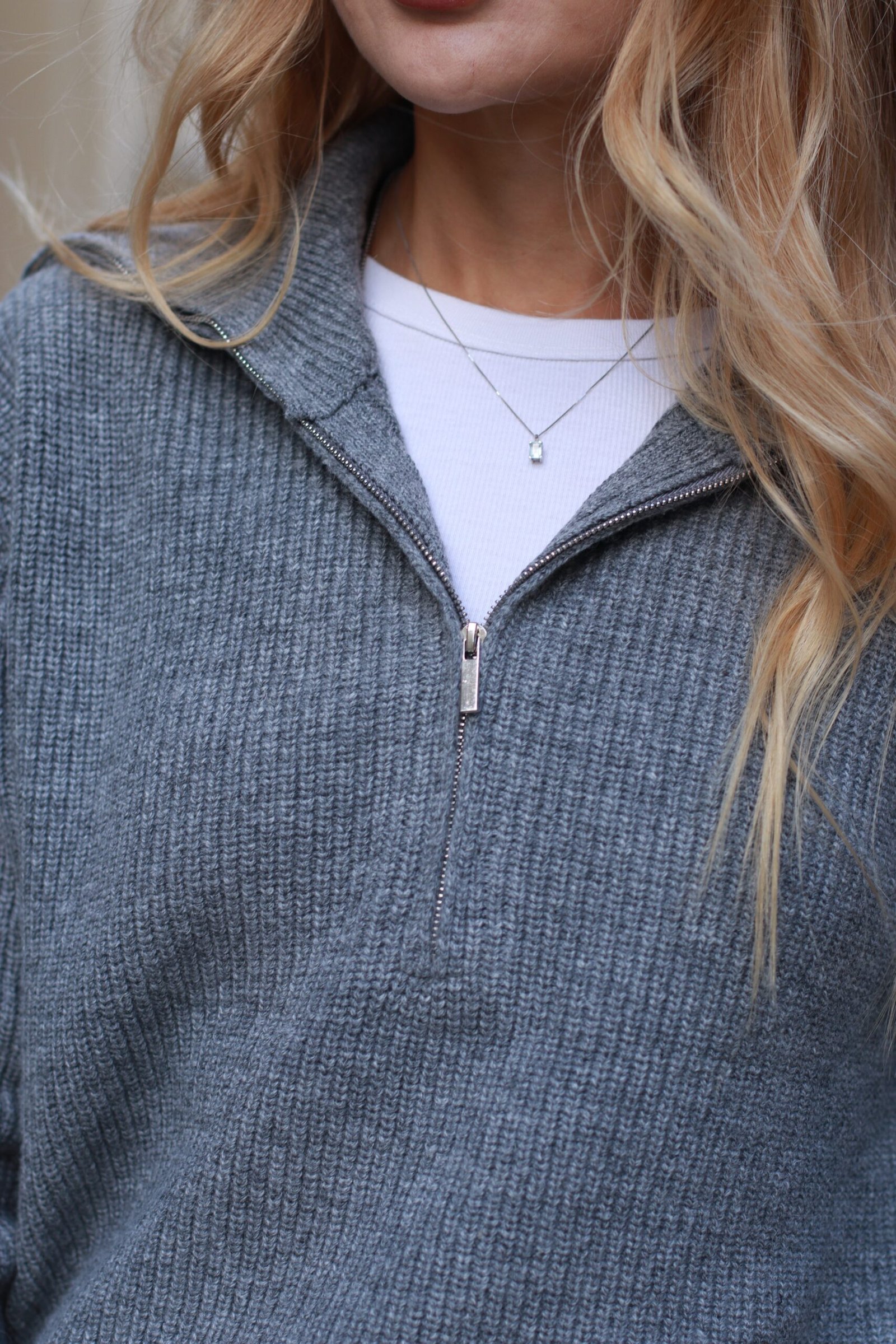 Klasikinio dizaino, jaukus ir šiltas pilkas megztinis su pusiniu užtrauktuku – puikus pasirinkimas rudens ir žiemos garderobui. Pagamintas iš minkšto audinio su vilnos priemaiša, jis maloniai priglunda prie kūno, šildo ir leidžia odai kvėpuoti.