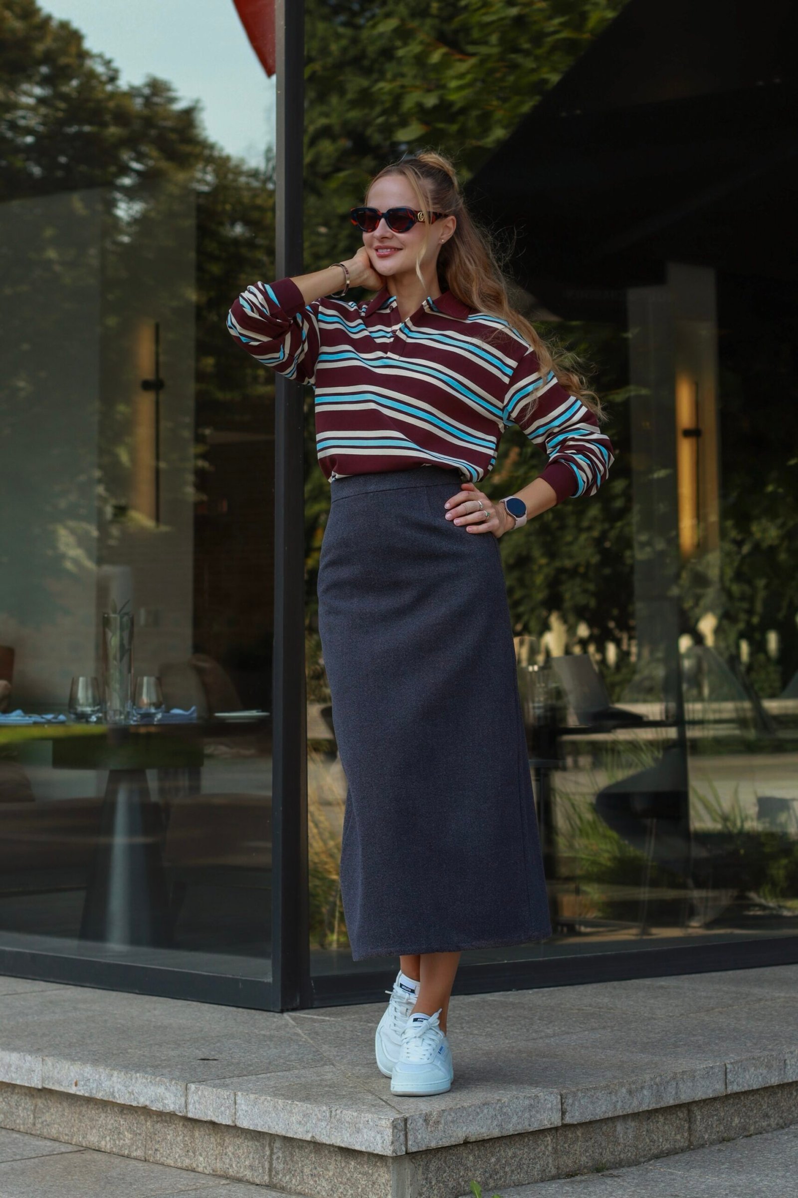 Šis sijonas taps nepakeičiama garderobo dalimi, nes gali būti lengvai derinamas tiek su aukštakulniais, tiek su sportiniais bateliais.