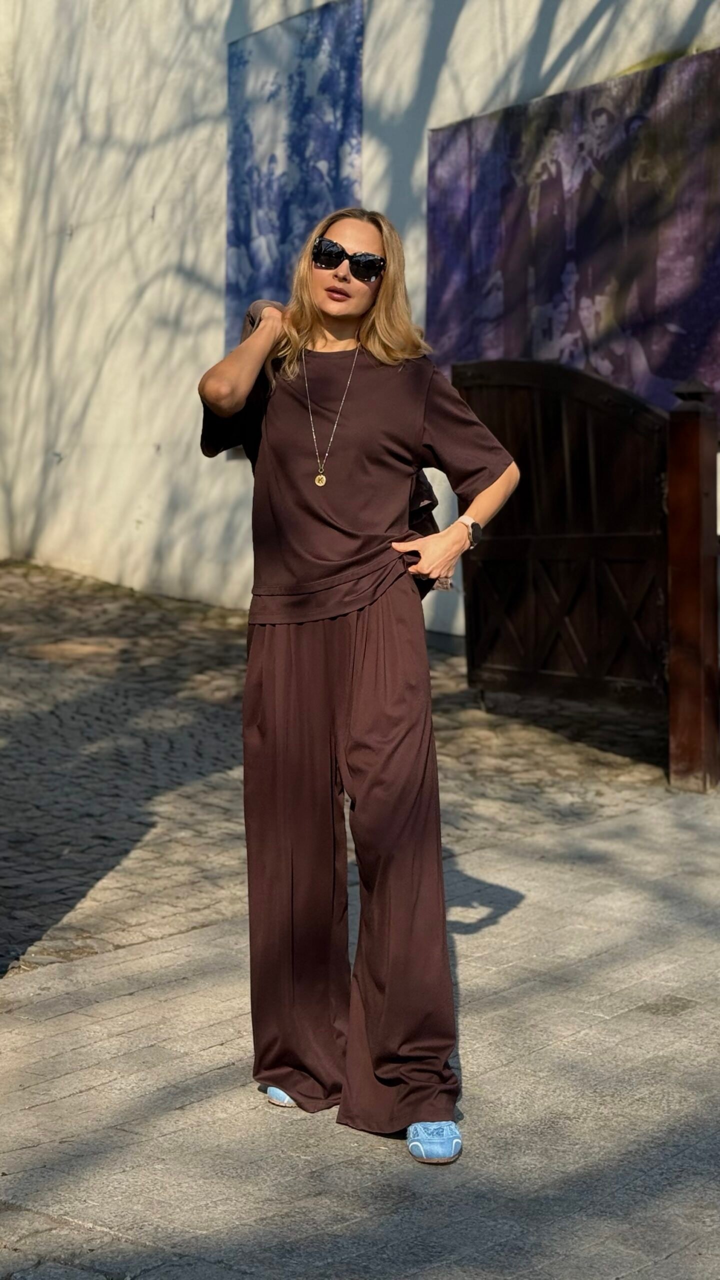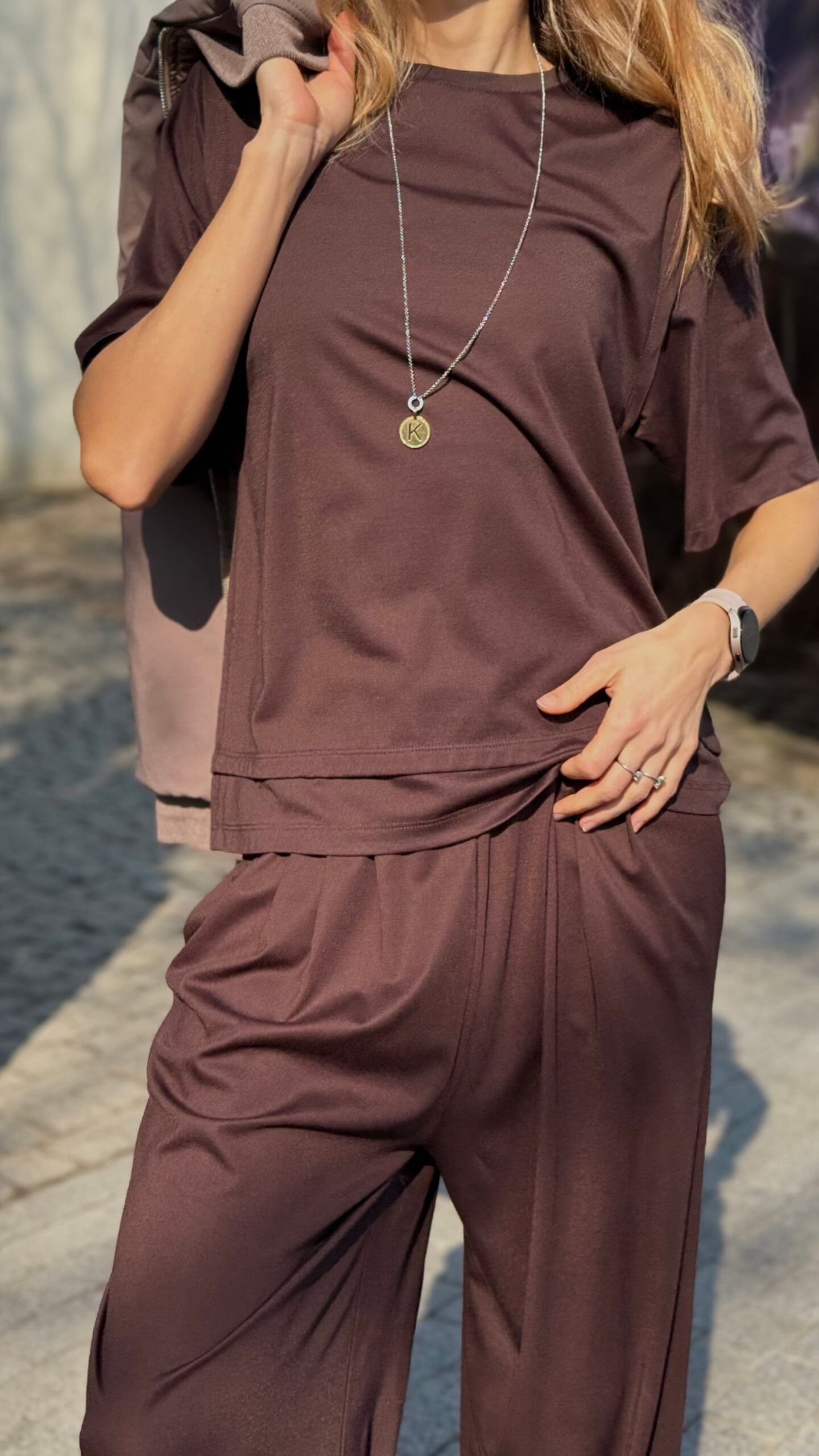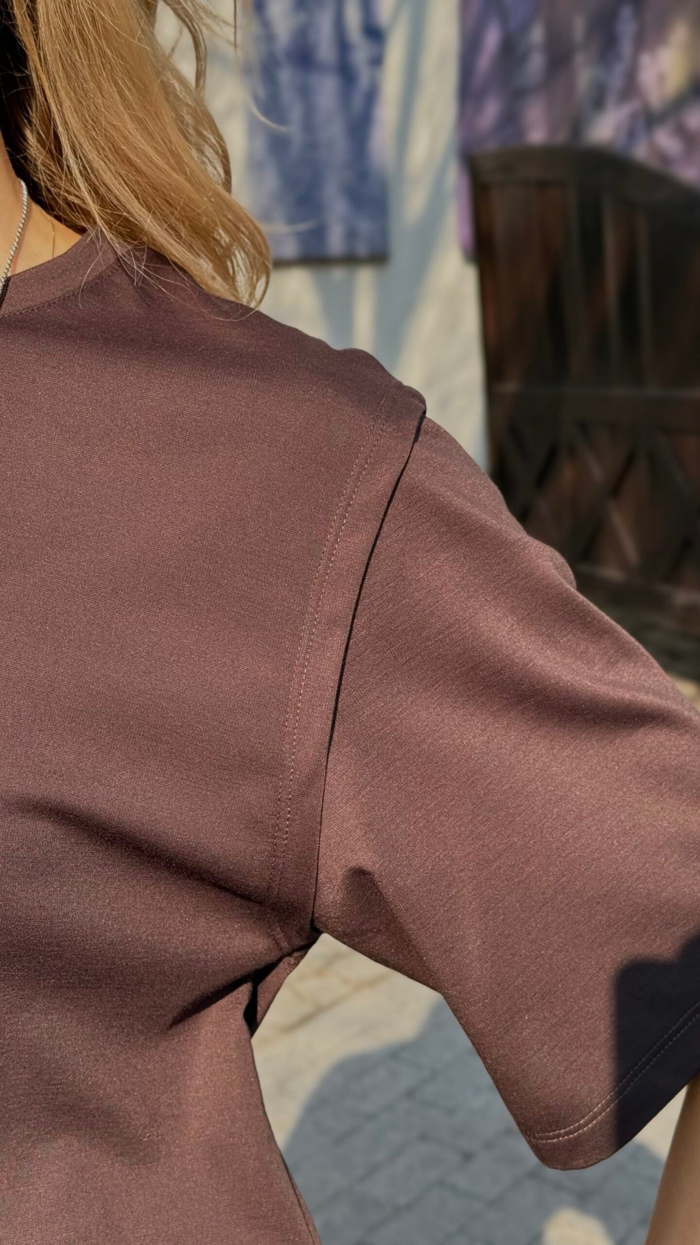Šilta, sodri šokoladinė ruda spalva ir laisvas, bet moteriškas siluetas – oversize palaidinė su trumpomis plačiomis rankovėmis. Minkštas, malonus prie kūno audinys su lengvu blizgesiu, puikiai krenta ir atrodo elegantiškai net su paprastu stiliumi. Idealus derinys su plačiomis kelnėmis kaip setas, džinsais ar sijonu – kasdieninis, bet labai stilingas pasirinkimas.