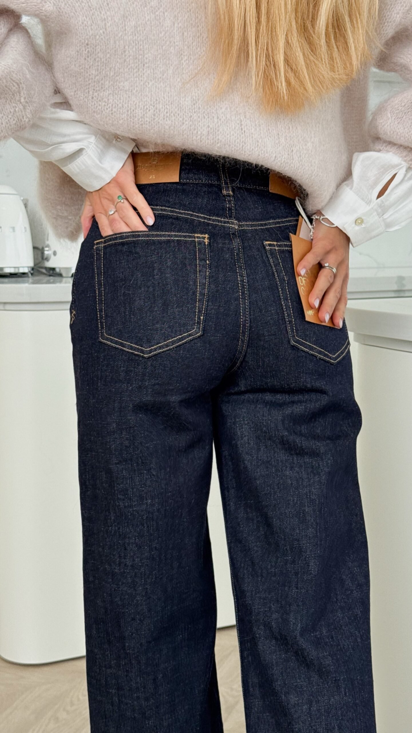 Klasika, kuri niekada neišeina iš mados – šie tamsiai mėlyni platėjantys džinsai suteiks tavo įvaizdžiui modernų, bet kartu elegantišką charakterį. Pagaminti iš kokybiško, tvirto ir šiek tiek tamprio džinso, jie puikiai priglunda ties klubais ir gražiai krenta ties kojomis, vizualiai ilgindami siluetą.