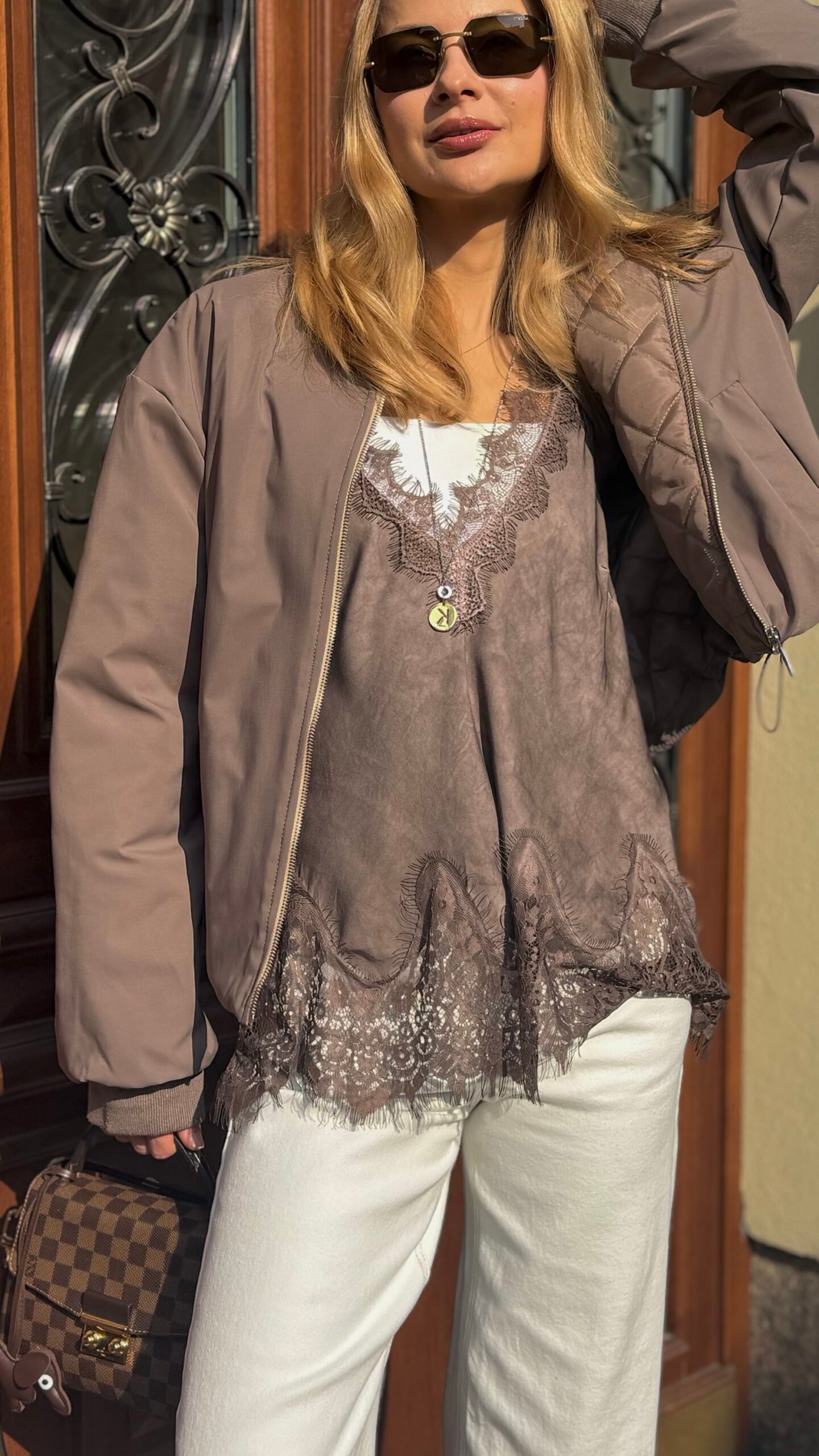 Lengva, švelni ir moteriška palaidinė, pagaminta iš 100% viskozės – tai idealus pasirinkimas ieškančioms elegancijos ir komforto derinio. Šis modelis išsiskiria prabangiu satino efektu bei subtiliais nėriniais ties iškirpte ir apačia, kurie suteikia įvaizdžiui romantiško žavesio.